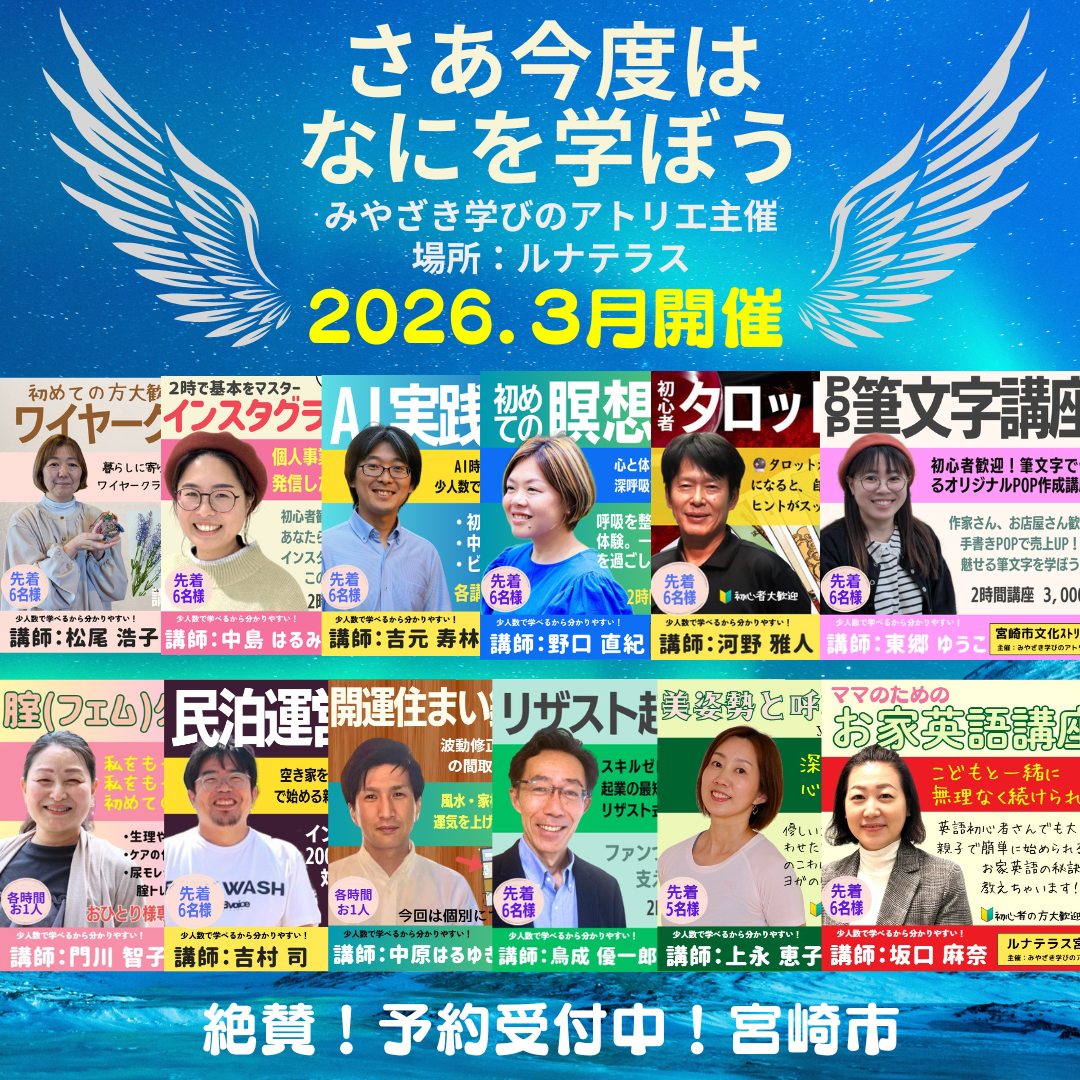 他の「みやざき学びのアトリエ」主催3月講座はこちら
